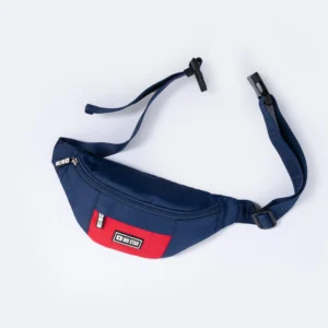 Saszetka męska typu nerka z czerwoną kieszonką na froncie granatowa Kralen 403