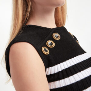 Promocja Taniej o 49 % stara cena 6899.99 zł nowa cena 3499.99 zł BALMAINSukienka z dzianiny w kolorze kości słoniowej w czarny monogram Balmain. Sukienka ze stójką, z poduszkami na ramionach. Zapinana na złoty suwak na plecach. Długie rękawy oraz dół wykończony czarnym ściągaczem.Delikatne czyszczenie chemiczne na sucho, nie suszyć w suszarce bębnowej, nie stosować wybielaczy.Wyprodukowana w Włoszech. ROZMIAR I DOPASOWANIE:Wymiary modelki:wzrost: 176 cmbiust: 85 cmtalia: 65 cmbiodra: 92 cmModelka ma na sobie sukienkę w rozmiarze 36. Wszystkie produkty z oferty outfit.pl są oryginalne i pochodzą bezpośrednio od producentów lub sprawdzonych dystrybutorów.
