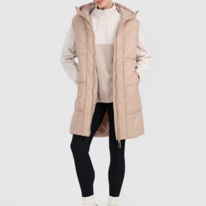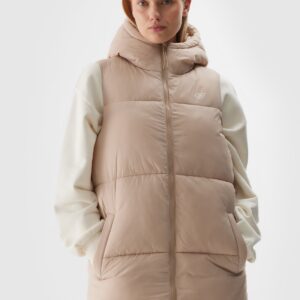 4F Długi bezrękawnik puchowy z wypełnieniem syntetycznym damski – beżowy