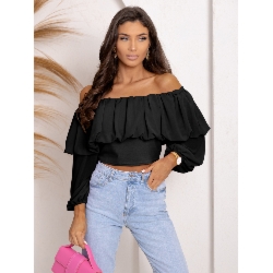 Bluzka hiszpanka z szyfonową falbaną VISJA – czarna