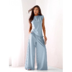 Komplet asymetryczna bluzka i spodnie ARMINA – błękitny