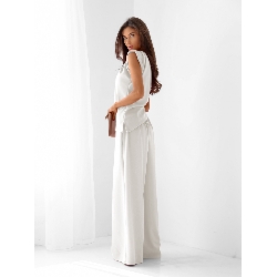 Komplet asymetryczna bluzka i spodnie ARMINA – biały