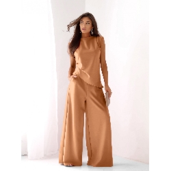 Komplet bluzka z szerokimi spodniami RAVEN – beżowy