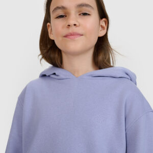 4F Bluza dresowa nierozpinana z kapturem dziewczęca – niebieska 128 (7-8 lat)