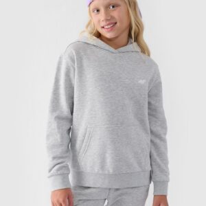 4F Bluza dresowa nierozpinana z kapturem dziewczęca – szara 122 (6-7 lat)