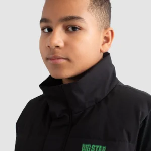 Kamizelka chłopięca pikowana z niewielkim nadrukiem na piersi czarna Tiger 906