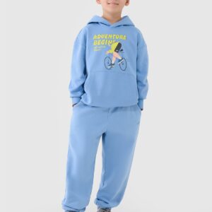 4F Bluza dresowa nierozpinana z kapturem chłopięca – niebieska 128 (7-8 lat)