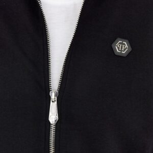 PHILIPP PLEIN Czarna rozpinana bluza męska hexagon z kapturem