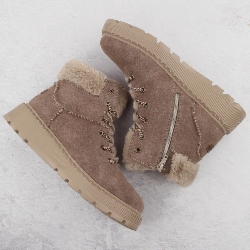 Skórzane botki damskie z futerkiem na platformie brązowe Rieker 70402