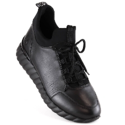 Skórzane komfortowe botki damskie na koturnie zimowe czarne Helios 584