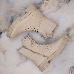 Skórzane botki damskie workery beżowe Goe SS2N4100