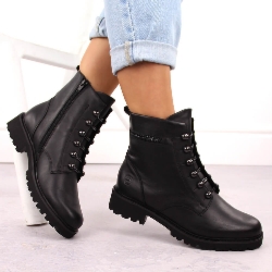 Skórzane trzewiki damskie ocieplane botki czarne Rieker Remonte D8670-01