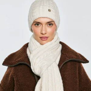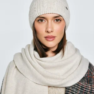 Czapka damska z dekoracyjnym splotem z pomponem kremowa Carole 103