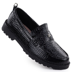 Czarne stylowe damskie mokasyny na platformie marki Filippo.