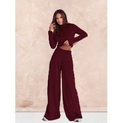Welurowy dres spodnie + bluza ROSE – bordowy