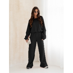 Komplet dzianinowy z szerokimi spodniami MILENA – czarny