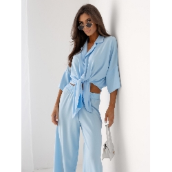 Komplet wiązana koszula i szerokie spodnie SUZI – błękitny