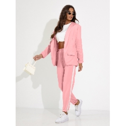 Modny garnitur z lampasami HATTIE – pudrowy róż