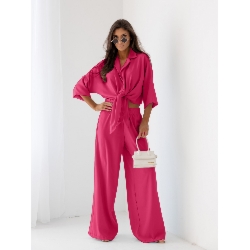 Komplet wiązana koszula i szerokie spodnie SUZI – fuksjowy