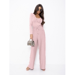 Komplet z wiskozy bluzka i szerokie spodnie AGRA – brudny róż