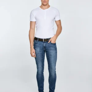 Jeansy męskie dopasowane z przetarciami jasnoniebieskie Terry Slim 239