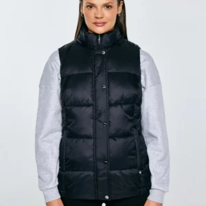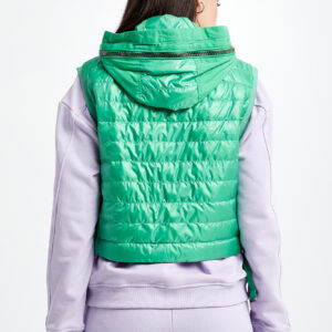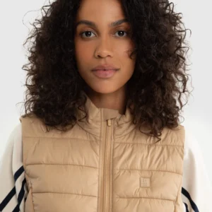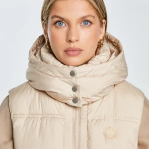 Kamizelka damska pikowana z kapturem beżowa Enifata 801