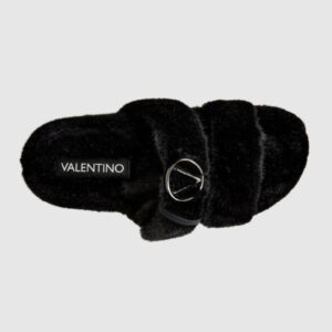 VALENTINO Czarne klapki damskie z syntetycznego futerka