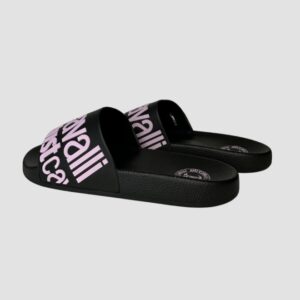 JUST CAVALLI Czarne klapki z fioletowym logo Fondo Pool