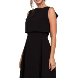 Elegancka rozkloszowana sukienka z dekoltem na plecach beż