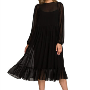 Sukienka rozkloszowana midi z falbankami dekolt V szyfonowa czarna