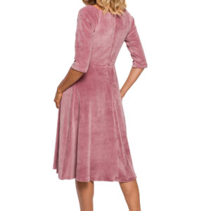 Sukienka welurowa rozkloszowana kopertowa midi z dekoltem V różowa