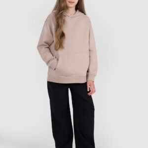 4F Bluza dresowa nierozpinana z kapturem dziewczęca – beżowa 140 (9-10 lat)