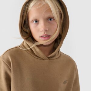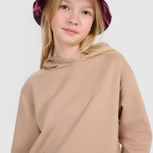 4F Bluza dresowa nierozpinana z kapturem dziewczęca – beżowa 122 (6-7 lat)