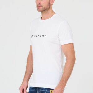 BALMAIN Biały t-shirt męski z małym aksamitnym logo