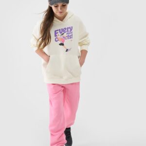 4F Bluza dresowa nierozpinana z kapturem dziewczęca – biała 122 (6-7 lat)
