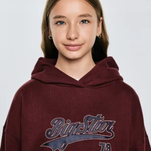 Bluza dziewczęca z kapturem z nadrukiem bordowa Rubilia 604