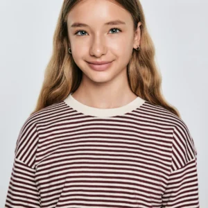 Bluzka dziewczęca w paski bordowo-beżowa Lanla 604