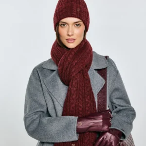 Szalik damski z dekoracyjnym splotem bordowy Caroles 604