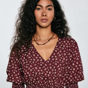 Sukienka damska midi z wiskozy z motywem kwiatowym bordowa Sheri 604