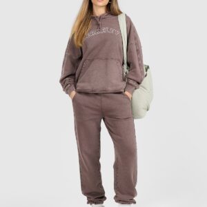 4F Bluza dresowa nierozpinana z kapturem damska – brązowa