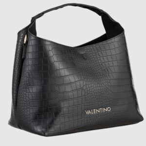 VALENTINO Mała czarna torebka o teksturze skóry z ozdobnym V divina haversack