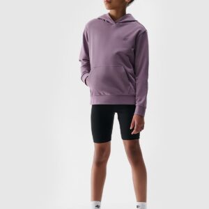 4F Bluza dresowa nierozpinana z kapturem dziewczęca – fioletowa 140 (9-10 lat)