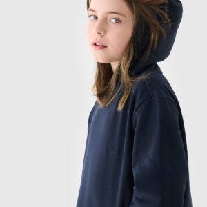 4F Bluza dresowa nierozpinana z kapturem dziewczęca – granatowa 122 (6-7 lat)