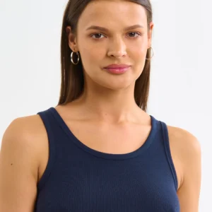 Koszulka damska na ramiączkach prążkowana granatowa Aurela 403
