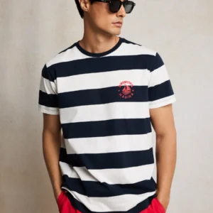 Koszulka męska w paski biało-granatowa Remir 403