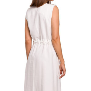 Sukienka koszulowa na lato szmizjerka midi z paskiem i guzikami ecru