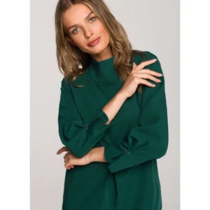 Sukienka elegancka pudełkowa z dekoracyjnymi zaszewkami zielona