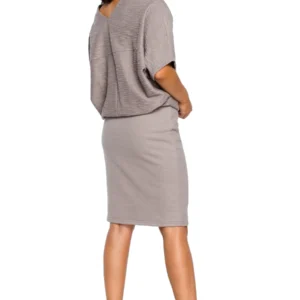 Sukienka dzianinowa ołówkowa ze zbluzowaną górą szara na co dzień