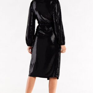 Sukienka kopertowa z bufiastymi rękawami błyszcząca czarna