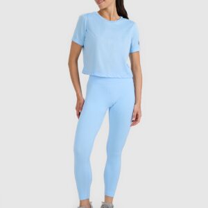 4F Koszulka treningowa crop-top szybkoschnąca damska – niebieska